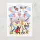 Tener animales en un circo es una idea ridícula. Los animales en esta divertida tarjeta colorida están mostrando lo realmente absurdo que es. Desde payasos cocodrilos hasta artistas de trapecio búfalos, un forzudo jabalí y una hipopótamo en un monociclo, todo es muy tonto. ¿O qué tal una jirafa en zancos, acróbatas puercoespines, una hiena bailando en la cuerda floja y un rinoceronte o una musaraña elefante lanzando a un guepardo al aire en un cañón?