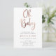 ¡Oh, nena! Invitación de Baby Shower con "Oh Baby" en una divertida caligrafía con falsos Relieves metalizados de oro rosa. La polka de oro se pega al revés. Personalizar con tu foto en el trasero.