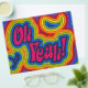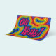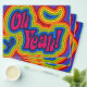 Folleto con ¡Oh Sí! y espirales psicodélicas en colores arcoíris