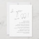 Esta es la tarjeta de invitación para la fiesta de boda secreta, con diseño de letra gris oscuro minimalista / minimalismo (oh sí, lo hicimos)