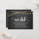 oh sí, lo hicimos, Tarjeta de anuncio / invitación de boda íntima, en pizarra rústica de granja, diseño de luces de cuerda. Esto es perfecto para la recepción de su boda y la fiesta de celebración después de la boda. Agregue sus detalles en la fuente / letra coincidente.