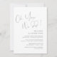 Esta es la tarjeta de invitación a la fiesta de boda secreta, con diseño de letra minimalista / minimalista en gris oscuro (oh sí, lo hicimos)