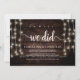 oh sí, lo hicimos, Tarjeta de anuncio / invitación de boda secreta, en madera rústica de granja, diseño de luces de cuerda. Esto es perfecto para la recepción de su boda y la fiesta de celebración después de la boda. Agregue sus datos en letra / letra coincidente.