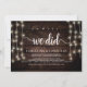 oh sí, lo hicimos, Tarjeta de anuncio / invitación de boda de Elopement, en madera de granja rústica, diseño de luces de cuerda. Esto es perfecto para la recepción de su boda y la fiesta de celebración después de la boda. Agregue sus datos en letra / letra coincidente.