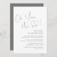 Esta es la tarjeta de invitación de la fiesta de boda de fuga, con diseño de letra gris oscuro minimalista / minimalismo (oh sí, lo hicimos)