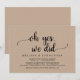 Hermoso Sí, lo hicimos, Anuncio de Boda Fugaz / Tarjeta de Invitación, en kraft marrón rústico, diseño simple y minimalista. Esto es perfecto para la recepción de su boda y la fiesta de celebración después de la boda. Agregue sus detalles en fuente / letra coincidente.