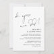 Esta es la tarjeta de invitación de la fiesta de boda y huida, con diseño de letra minimalista / minimalismo (oh sí, lo hicimos)