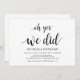 sí, lo hicimos, boda elopement tarjeta de invitación. Esta rústica tarjeta de invitación temática de kraft boda es perfecta para su boda y fiesta de celebración post-boda. Añade tus detalles en letras o letras negras coincidentes. Teesha Derrick