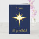 "Vengan, todos fieles" Navidades Relieve metalizado tarjeta de vacaciones. Celebra el verdadero significado de los Navidades con esta carta bellamente hecha, con una radiante cubierta de Relieve metalizado dorado adornada con la Estrella Belén y la invitación eterna, "Vengan, todos fieles". En el interior, el lado izquierdo de la tarjeta muestra una imagen conmovedora de la Madre María criando al Niño Jesús, un símbolo del amor y esperanza divina de la temporada. A la derecha, las amadas letras de "O Come, All Ye Faithful" van acompañadas de un sincero mensaje.