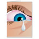 Acercar el ilustracion de un ojo humano azul con una lágrima cayendo del latido. Tal vez la persona tiene miedo o está de duelo o quizás deprimida o estresada. Imagen disponible en varios regalos y productos.