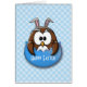Dulce búho de Pascua sobre un fondo de gingham.