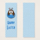 Dulce búho de Pascua sobre un fondo de gingham.