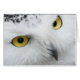 Hermosos y misteriosos ojos de una linda lechuza. Foto de cerca de búho de nieve con ojos amarillos.