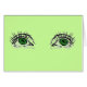 Esto es una tarjeta de felicitación en blanco con mi dibujo de los "ojos verdes" en el frente de la tarjeta. La tarjeta es totalmente adaptable, así que usted puede cambiar los colores de la tarjeta entera y añadir su propio texto e imágenes. Las únicas imágenes que no pueden ser cambiadas son los "ojos verdes" en el frente de la tarjeta, y mi logotipo y el logotipo de Zazzle en la parte posterior. ¡Goce!