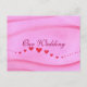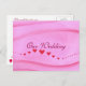 La pintura de corazones de diferente tamaño en rojo, en un fondo rosa mezclado, se imprime en postales de invitación a boda personalizadas. El texto se puede personalizar fácilmente en los formularios de plantilla.