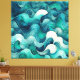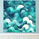 Verdes estéticos y azules, ondas abstractas de arte mural impresas en un gran lienzo cuadrado.