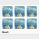 Las ondas devuelven el pegatina cuadrado de la dirección a usar como sello para sobres. Las olas del océano azul se están rompiendo en el fondo. Se agrega texto en blanco en dos lugares -en el guión del nombre e impreso para la dirección- se pueden agregar hasta tres líneas de dirección. Frangipani blanco, o plumeria, flores en el fondo. Se muestra en los pegatinas más grandes de 3 pulgadas para facilitar su visualización.