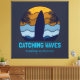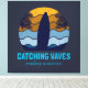 Celebre los interminables días de verano con este diseño de surfboard de inspiración vintage con una atrevida puesta de sol, olas del océano y siluetas de palma. Ideal para los amantes del surf y de la playa que viven para la emoción de las olas y la creación de inolvidables recuerdos costeros. Un homenaje perfecto a la libertad tropical y a las vibraciones retro.