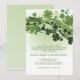 Un encantador arreglo de cintas verdes y ondas de tréboles multicolores sobre un fondo blanco. Una invitación estacional para cualquier celebración. La tarjeta es fácil de personalizar con su texto, fuente, color de fuente y elección de seis tipos de papel.