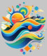 Esta dinámica obra de arte utiliza figuras geométricas audaces y líneas fluidas para expresar el viaje del río. El sol brillante, las olas coloridas y las montañas lejanas están en armonía, simbolizando el equilibrio entre los elementos de la naturaleza. La vibrante paleta de colores evoca un ritmo de vida que cambia constantemente, añadiendo energía y movimiento. El formulario abstracto aumenta la sensación de flujo continuo y representa la interconectividad de todos los objetos.