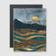 Una cautivadora tarjeta de bienvenida de paisaje abstracto con olas doradas y verde azuladas en capas que fluyen por el primer plano, en contraste con las montañas oscuras y las texturas plateadas. Un sol dorado resplandeciente se eleva (o se pone) detrás de los picos, creando una atmósfera serena y mística. Las ricas texturas de Relieve metalizado, purpurina y superficies de mármol aportan profundidad y elegancia, lo que hace que este diseño sea perfecto para los amantes de los estilos modernos, inspirados en la naturaleza y lujosos.