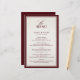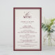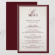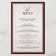 This burgundy and ivory wedding menu card features a refined minimalist layout framed with a rich maroon border and timeless serif typography. The structured format elegantly presents each course while maintaining a sophisticated old money aesthetic.