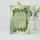 Un hermoso RSVP verde con una vid sobrepoblada. Incluye el área para escribir tres opciones para el curso principal Por favor, compruebe tres veces el texto.