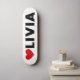 El nombre de Olivia con la letra o sustituida por un corazón de amor rojo. Los colores se pueden cambiar.