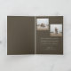 Envía elegantes felicitaciones de Navidad familiares con esta tarjeta plegada moderna y minimalista. El diseño limpio y simple presenta un marco de arco elegante sobre un fondo verde oliva intenso, perfecto para las fotos de vacaciones familiares al aire libre. Un guión manuscrito atemporal añade un toque chic, lo que lo convierte en una excelente opción para una primera Navidad como familia de 3. Personaliza el interior con tus propios deseos de Navidad con fotos y mensajes familiares para crear un preciado recuerdo para el año nuevo.