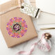 Mandala geométrica poderosa y energizante en el centro de berry rosa, amarillo, violeta profunda y con el símbolo Om dorado sobre el que se ha colocado.