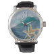 Reloj de pulsera de pez estrella con onda oceánica estrepitosa y plantilla inicial monograma. Elija cualquier estilo de banda para hombres o mujeres que aman el mar.