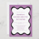 Prepárate para celebrar con estilo con nuestra moderna invitación a la soltera de diseño de olas. Esta sencilla pero llamativa invitación morada, negra y blanca es totalmente editable, lo que le permite personalizarla con sus actividades únicas de fin de semana. ¡Anuncie "tu fin de semana de soltera" con aire! Desde su fecha de llegada a la ciudad/lugar, esta invitación marca el tono para un fin de semana inolvidable. Incluye todos los detalles esenciales, como el coste del fin de semana cubriendo alojamiento y comidas, e incluso invita a los invitados a la RSVP. Nuestra invitación capta el ambiente romántico y femenino de su evento. Infórmele a sus amigos sobre el emocionante programa, que incluye cócteles de bienvenida, brunch, compras, tiempo de spa, cena de bodega, fiesta de baile y más. Haga que su fin de semana de soltera sea inolvidable con nuestra elegante invitación que refleja la personalidad única de la futura novia y prepara el escenario para una celebración increíble.