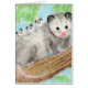 Un ACEO de una buena madre de opossum, encaramada en una rama de árbol, con sus trillizos en la espalda. Pintado con lápices Derwent de grafito soluble en agua y lápices de acuarela.