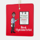 Este es un regalo divertido para el médica de ojos masculino que conoces. Puede cambiar y personalizar este texto en la parte delantera y trasera como desee. Debido al estilo, sólo se puede comprar este diseño en adornos SQUARE. Hace un gran regalo para el cumpleaños, el Día del Padre, Navidades o para el Día Mundial de la Optometría, anualmente el 23 de marzo. Diseñado por Sheila Cicchi, Brownielocks.com. Todos Los Derechos Reservados.