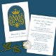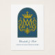 Esta tarjeta de oración de boda católica reverente presenta un monograma mariano dorado radiante coronado en gloria y enmarcado dentro de un arco azul mariano. La parte delantera honra a Nuestra Señora, cuya intercesión bendice el Sacramento del Santo Matrimonio. En el interior, una solemne bendición nupcial reza por la unidad, la paz y la santidad de la pareja, inspirada en la Sagrada Familia. Un recuerdo apreciado para bodas arraigadas en la belleza de la tradición católica y la devoción a la Santísima Virgen María.