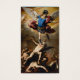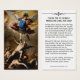 En el frente se encuentra una bella imagen católica tradicional de San Miguel el Arcángel de Luca Giordano titulada "La caída de los ángeles". En la parte trasera: Oración por la protección de San Miguel mientras duermes, ¡Jesús dulce recibe nuestras almas! Que la Santísima Virgen María, San José y todos los Santos y Ángeles glorifiquen y amen el Sagrado Corazón de Jesús por nosotros esta noche, y oren por nosotros a nuestro Señor, para que nos preserven durante él de todo pecado y maldad. Bendito San Miguel, defiéndanos en el día de la batalla, para que no nos perdamos ante el terrible juicio. Oh ángeles de Dios a cuyo cuidado nos comete la Suprema Majestad, iluminadnos, gobiernarnos y defendernos, esta noche, de todo pecado y peligro. Sálvennos, oh Señor, despertando y dorméndonos, para que podamos ver con Cristo y descansar en paz. Amén.