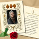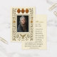 Esta elegante tarjeta católica conmemorativa está adornada con marfil y marcos dorados de inspiración vintage que presentan los Tres Corazones de Jesús, María y José en forma simbólica tradicional. El frente incluye una foto personal centrada, mientras que el reverso tiene una oración sincera por el descanso eterno del alma. Un recuerdo eterno de los funerales, las masas conmemorativas o el Día de Todas las Almas, cariñosamente diseñado para los difuntos fieles.