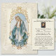 Con una bella imagen católica tradicional de la Santísima Virgen María, Nuestra Señora de la Gracia envuelta en un marco dorado ornamentado con flores azules. El fondo es un diseño de encaje vintage. Todo el texto y las fuentes están en español y pueden ser modificadas.