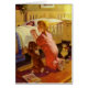 Diseño cristiano de ilustracion de época con un niño arrodillado cerca de su cama. Su perro cachorro mascota la está ayudando a rezar antes de ir a dormir. Un oso de peluche está junto a su mesa de noche y una muñeca de juguete duerme en su cama. Oraciones familiares a la hora de acostarse.