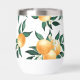 Enjoy your favorite beverage in style with this elegant watercolor citrus wine tumbler. The design features hand-painted oranges, lush green leaves, and delicate orange blossoms on a crisp white background. A soft green border frames a customizable monogram and name, creating a personalized and sophisticated look.