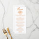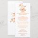 A colorful retro funky modern orange floral bouquet wedding dinner menu. Which features chic template design of boho vintage white background on the front and back. With orange whimsical typography. Prfect and matching with the whole suite.