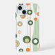 Esta obra de arte presenta un diseño elegante y minimalista de formas circulares y alargadas, dispuestas en una alineación vertical que recuerda a los diseños retro-futuristas. La composición se basa en una paleta de colores fresca de color verde, naranja y crema suave, creando un aspecto armonioso y equilibrado. Los círculos, algunos sólidos y otros delineados, parecen flotar a lo largo de líneas verticales delgadas, evocando las imágenes de planetas y órbitas. La combinación de líneas depuradas y formas suaves le confiere a la pieza un toque moderno y nostálgico que combina la estética moderna de mediados de siglo con un toque de estilo contemporáneo.