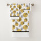 Una Toalla De Baño De Oro Y Negro Pateada Con Orbes Dorados Y Hojas Negras Sobre Blanco