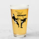 Crear un regalo personalizado para alguien que ame las ballenas y otros animales del océano. Este cristal de pinta presenta ilustraciones de orcas o ballenas asesinas en blanco y negro con gráficos en la parte delantera y trasera del vidrio. La parte frontal tiene un punto para agregar un nombre con letras negras en negrita.