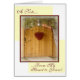 Tarjeta de nota divertida que tiene un corazón de mimbre colgando en una puerta. Ideal para recibir notas para enviar a amigos, familiares o alguien especial. (Esta versión está personalizada para el grupo de supervivientes de Cáncer de Mama Hermana.