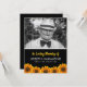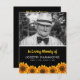 Orden funeral del servicio/nota de agradecimiento con un elegante fondo negro, brillantes girasoles amarillos, una foto de tu ser querido perdido, orden conmemorativo del servicio, y una plantilla de agradecimiento que es fácil de personalizar.
