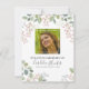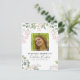 Orden funeral del servicio/nota de agradecimiento con un fondo blanco clásico, una hermosa decoración de acuarela floral y follaje, una moderna foto cuadrada de tu ser querido perdido, orden conmemorativa del servicio, y una plantilla de agradecimiento que es fácil de personalizar.