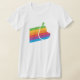 El color es muy bonito al natural, como la foto. El tejido es suave y de buena calidad. Sin defectos en el tintado, ni hilos sueltos o descosidos. Bien la impresión. Los bordes de las letras y el dibujo son nítidos, y el color contrasta muy bien con el de la camiseta.