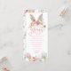 Celebra la Pascua con un brunch de Pascua. En este adorable menú de brunch hay unos alegres oídos conejitos enclavados en un ramo de flores sobre unas bonitas letras a mano que dicen "Brunch de Pascua". Puedes personalizar con tus ofrendas de brunch. Al final del menú, hay una hilera de huevos de Pascua pastel. Este diseño está sobre un fondo blanco brillante y la parte posterior de la tarjeta tiene un fondo de patrón floral de primavera.