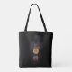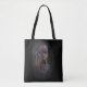Bolsa de compras de tote con la cabeza gritando de Orfeo en el Underworld revelando una lengua falsificada. El reverso representa una colorida serpiente arco iris y manzana hendida.